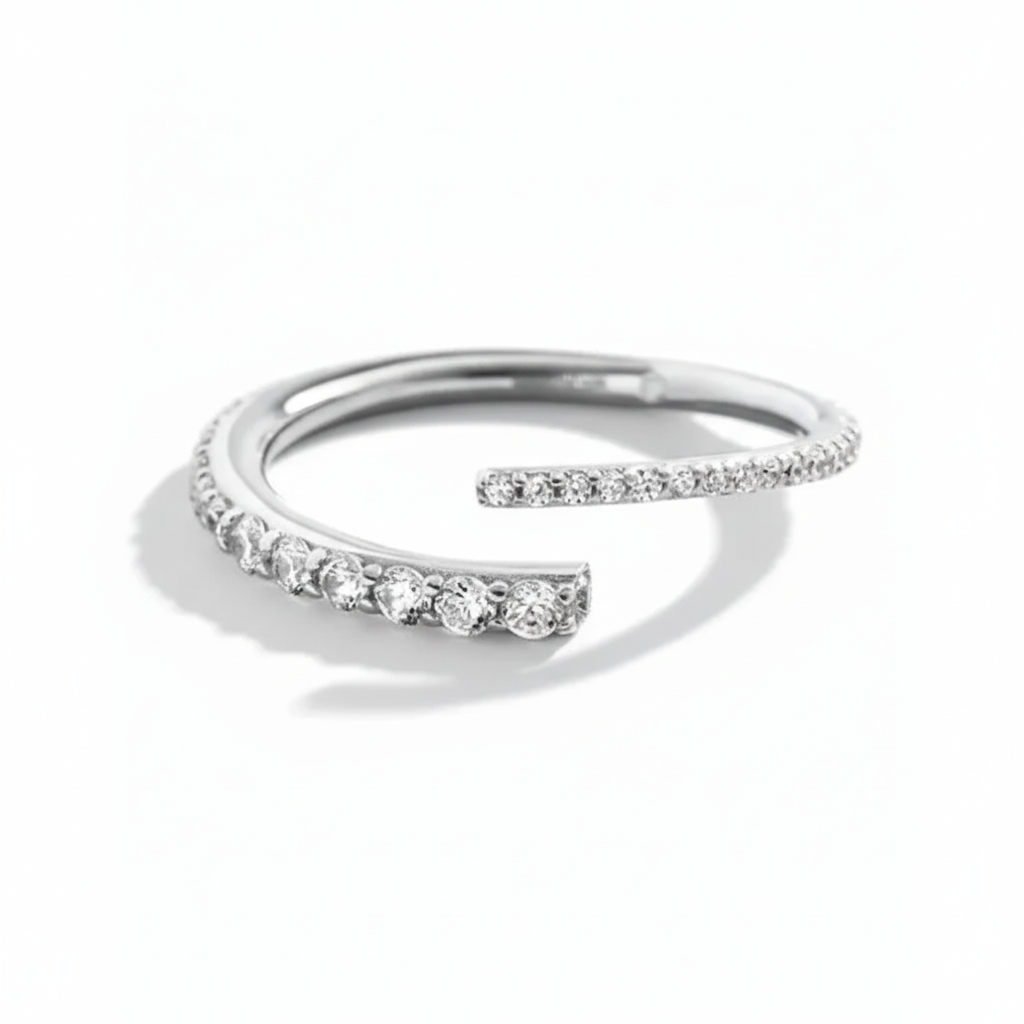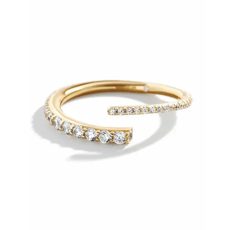 Anillo asimétrico con detalles de circones brillantes incrustados, versátil y fresco es ideal para el uso diario, puedes usarlo solo o combinarlo con más anillos.