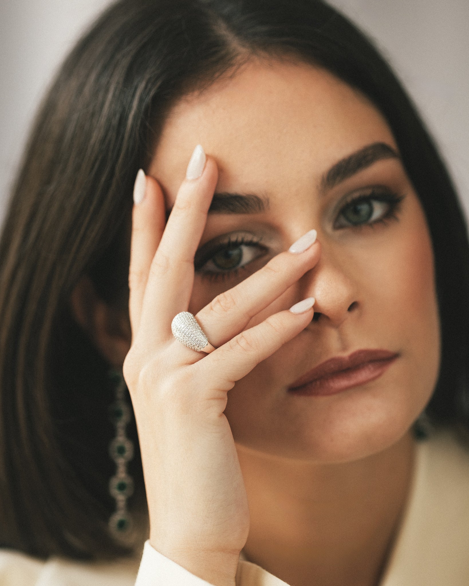 Anillo chunky con circones brillantes incrustados, elegante y sofisticado es ideal para combinarlo en una ocasión especial.