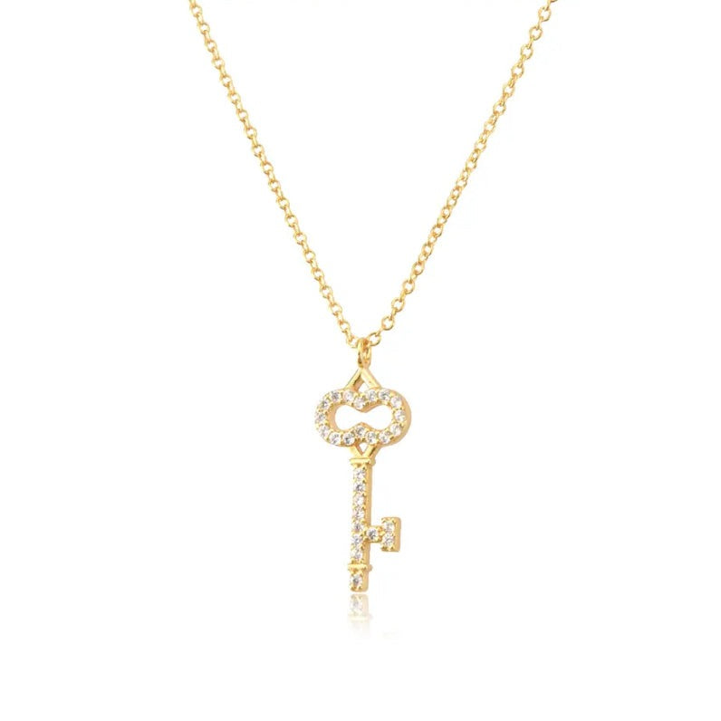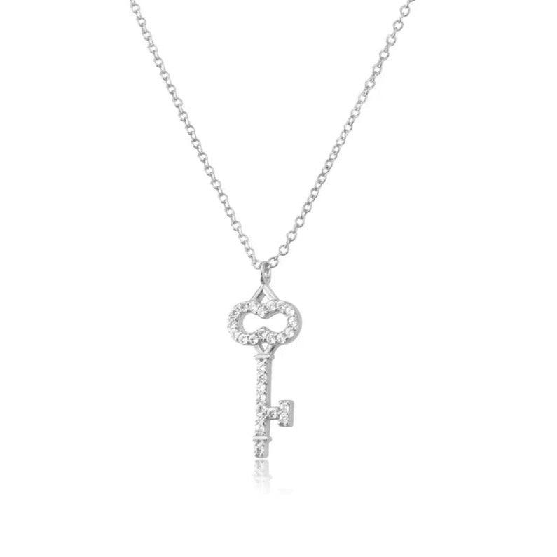 Delicado collar con dije de llave con circones brillantes incrustados, romántico y elegante, es perfecto para el uso diario o para ocasiones especiales, ideal para usar solo o combinar con más collares.