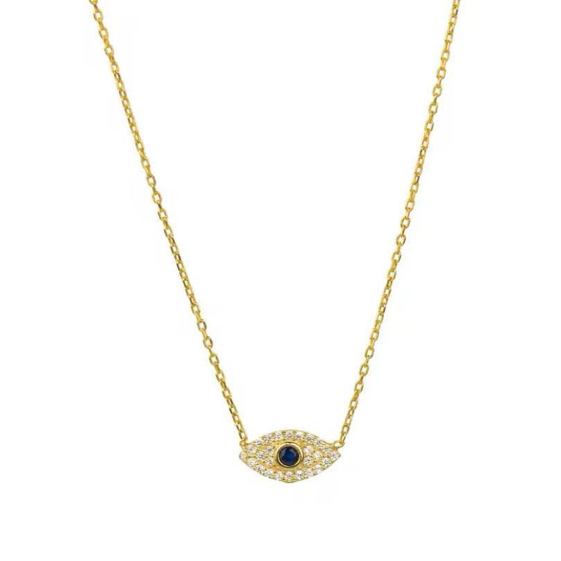 Delicado collar con dije de ojo con circones brillantes, elegante y audaz es perfecto para el uso diario o para ocasiones especiales, este ojito es considerado un amuleto contra el mal de ojo.
