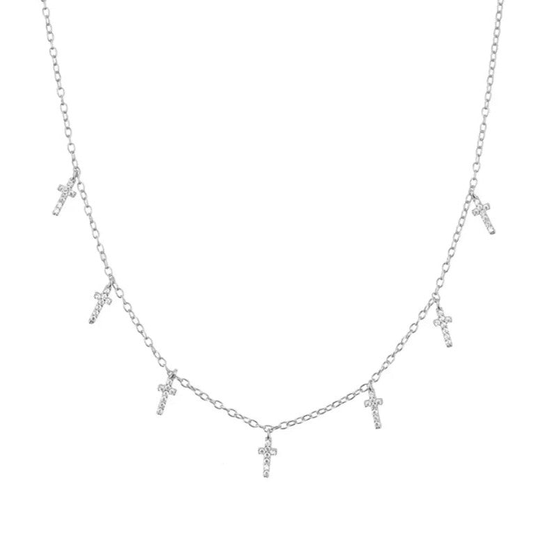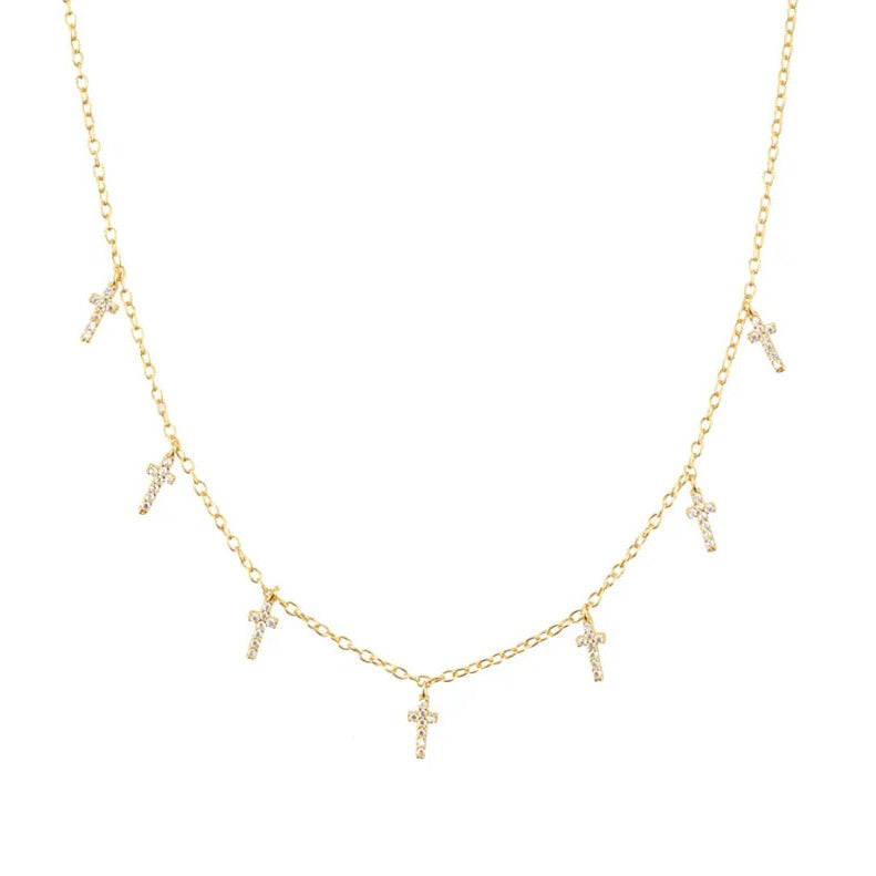 Delicado collar con dijes en forma de cruz, divertido y elegante a la vez, es perfecto para el uso diario o para una ocasión especial, lo puedes usar solo o combinarlos con más collares.