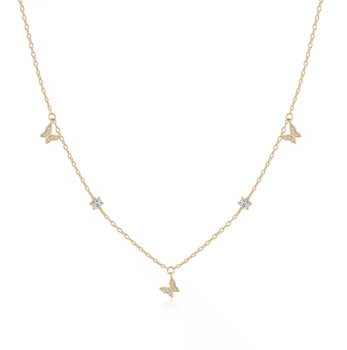 Delicado collar con dijes de mariposas y circones brillantes, rom