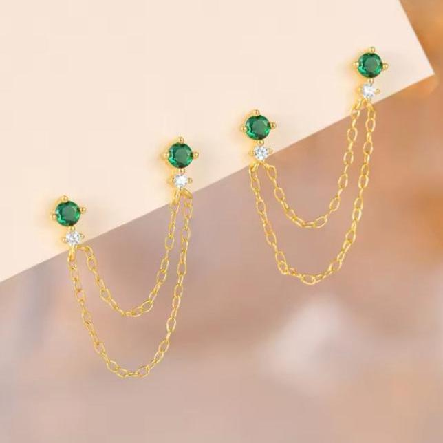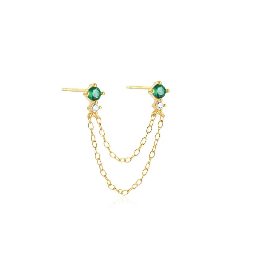 Delicado zarcillo con 2 puntos de luz unidos por cadenas asimétricas, UN complemento perfecto para un look de fiesta o de diario.