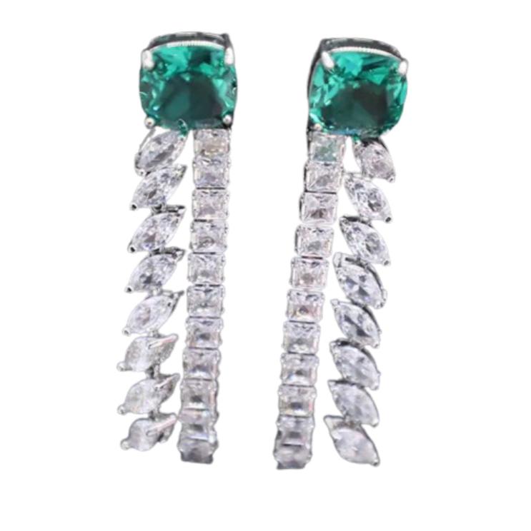 Zarcillos largos con circones centrales en tono turquesa y circones colgantes, elegantes y atrevidos,