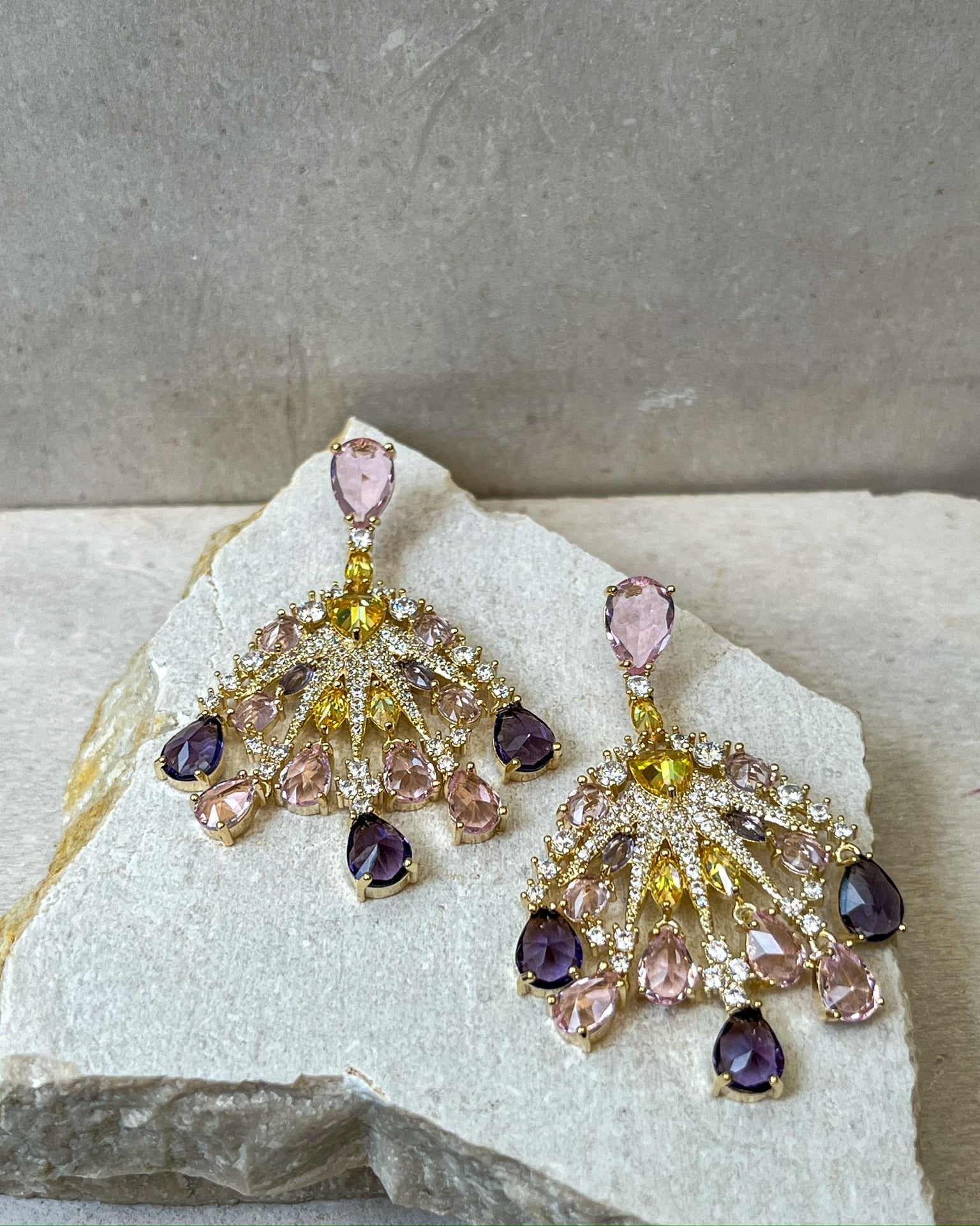 Zarcillos elegantes con circones varios tonos ideales para ocasiones especiales, elegantes y audaces, son ideales para hacer de cualquier combinación un look de alto impacto.