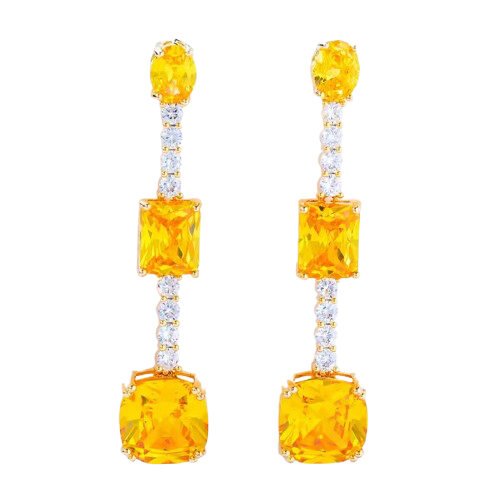 Zarcillos largos con circones cuadrados en distintos tonos, elegantes y llamativos, son ideales para hacer de cualquier combinación un look de impacto.