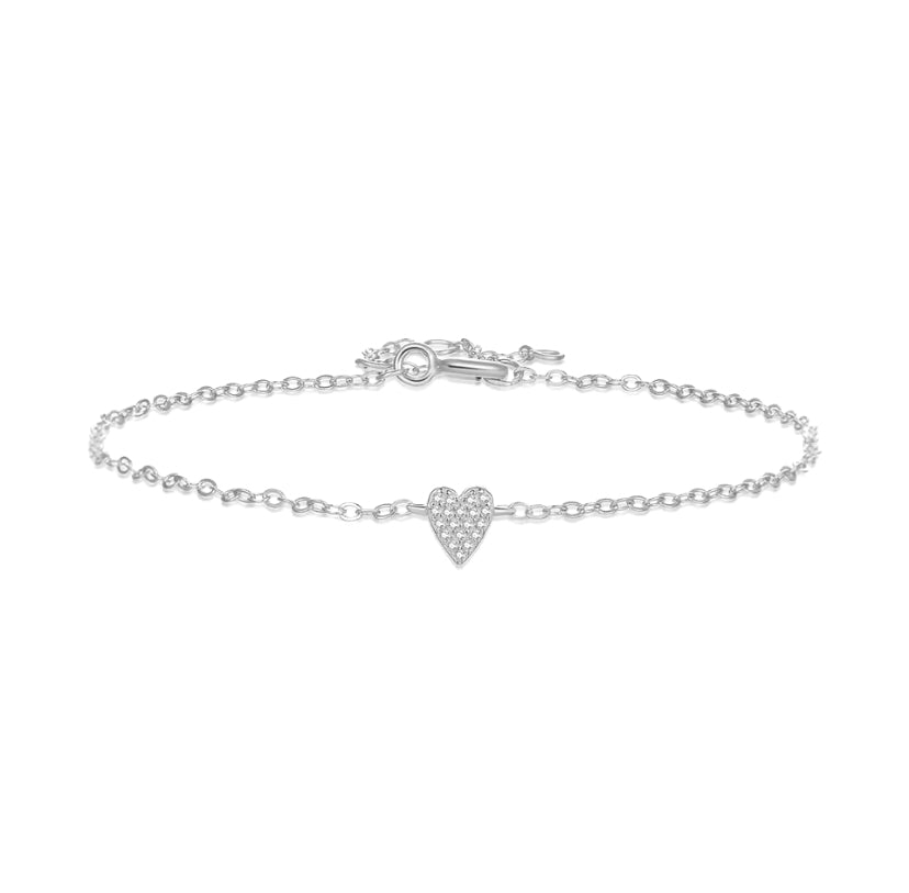 Pulsera con un pequeño dije central de corazón, delicada, femenina y fácil de combinar para cualquier ocasión.