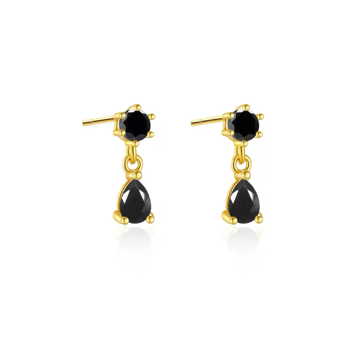 Zarcillos con circones brillantes en negro, son ideales para el uso diario o para combinar con más zarcillos, su tamaño los hace ideales para piercings o segundas perforaciones.