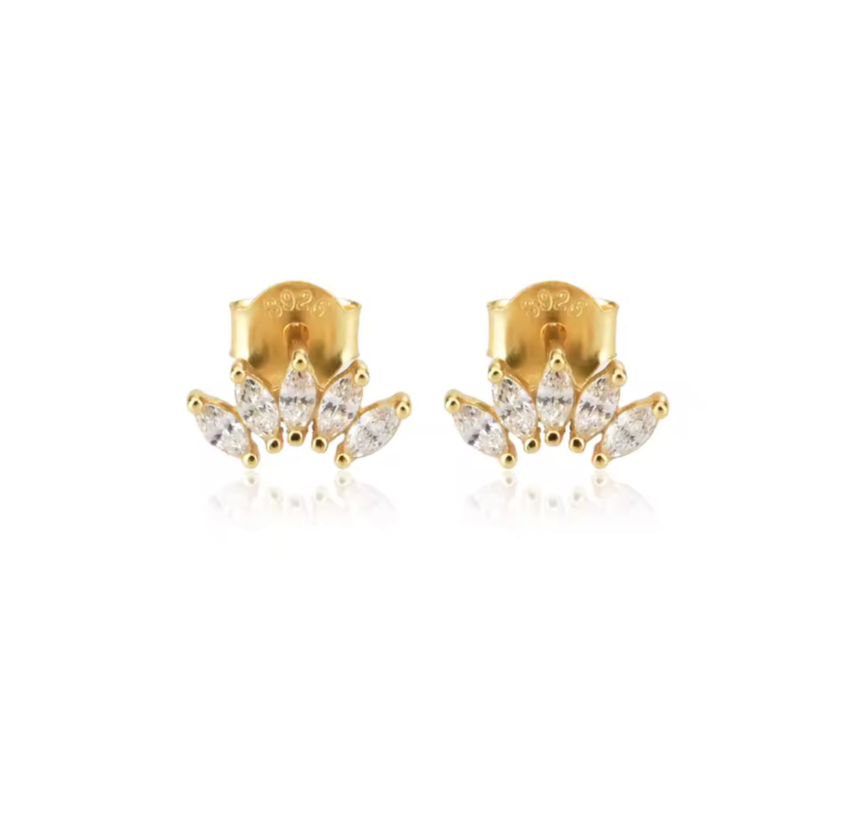 Pequeño y elegantes zarcillos en en forma de corona con base plateada y circones transparentes, ideales para el uso diario y combinarlos con mas zarcillos, su tamaño los hace ideales para piercings o segundas perforaciones.