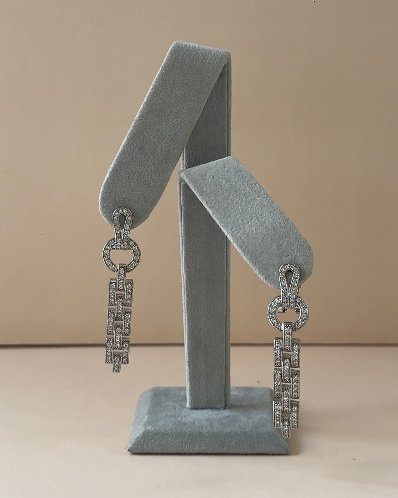 Zarcillos largos en forma de eslabones, delicados y elegantes, son ideales para hacer de cualquier combinación un look de impacto.